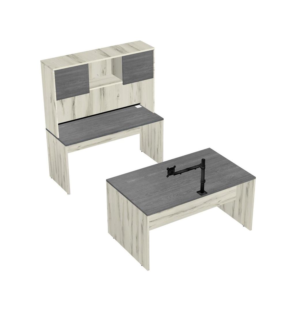 Office Parallel Desk Credenza Desk + Hutch + Monitor Arm (single Arm)