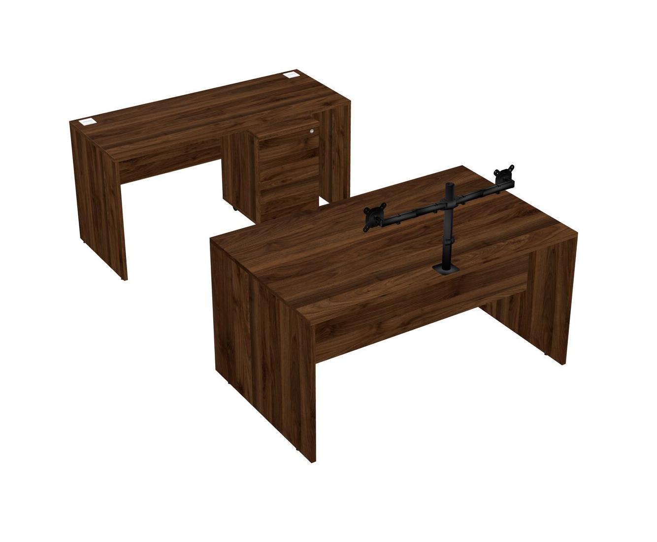 Office Parallel Desk Credenza Desk + Wooden Mobile Drawers + Monitor Arm (double Arms)