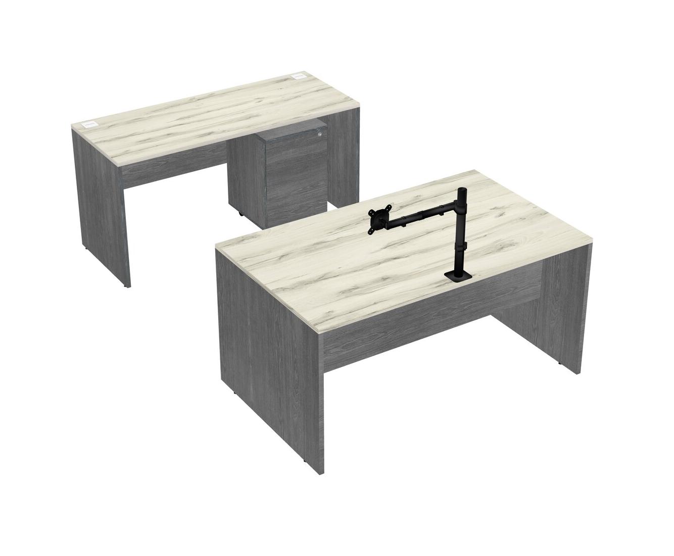 Office Parallel Desk Credenza Desk + Wooden Mobile Drawers + Monitor Arm (single Arm)