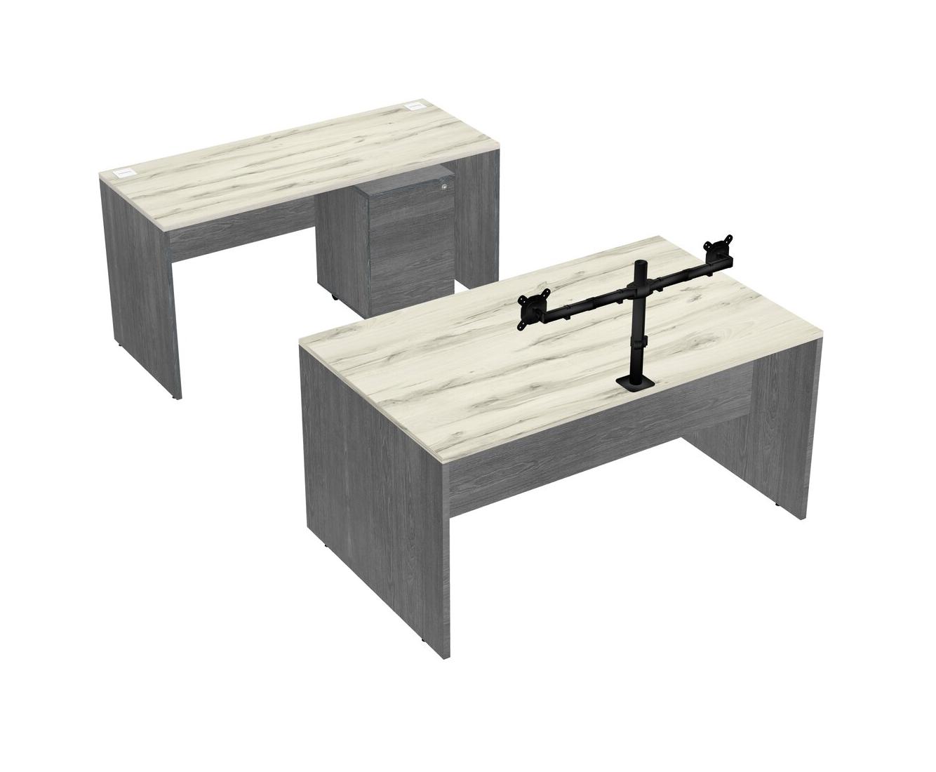 Office Parallel Desk Credenza Desk + Wooden Mobile Drawers + Monitor Arm (double Arms)