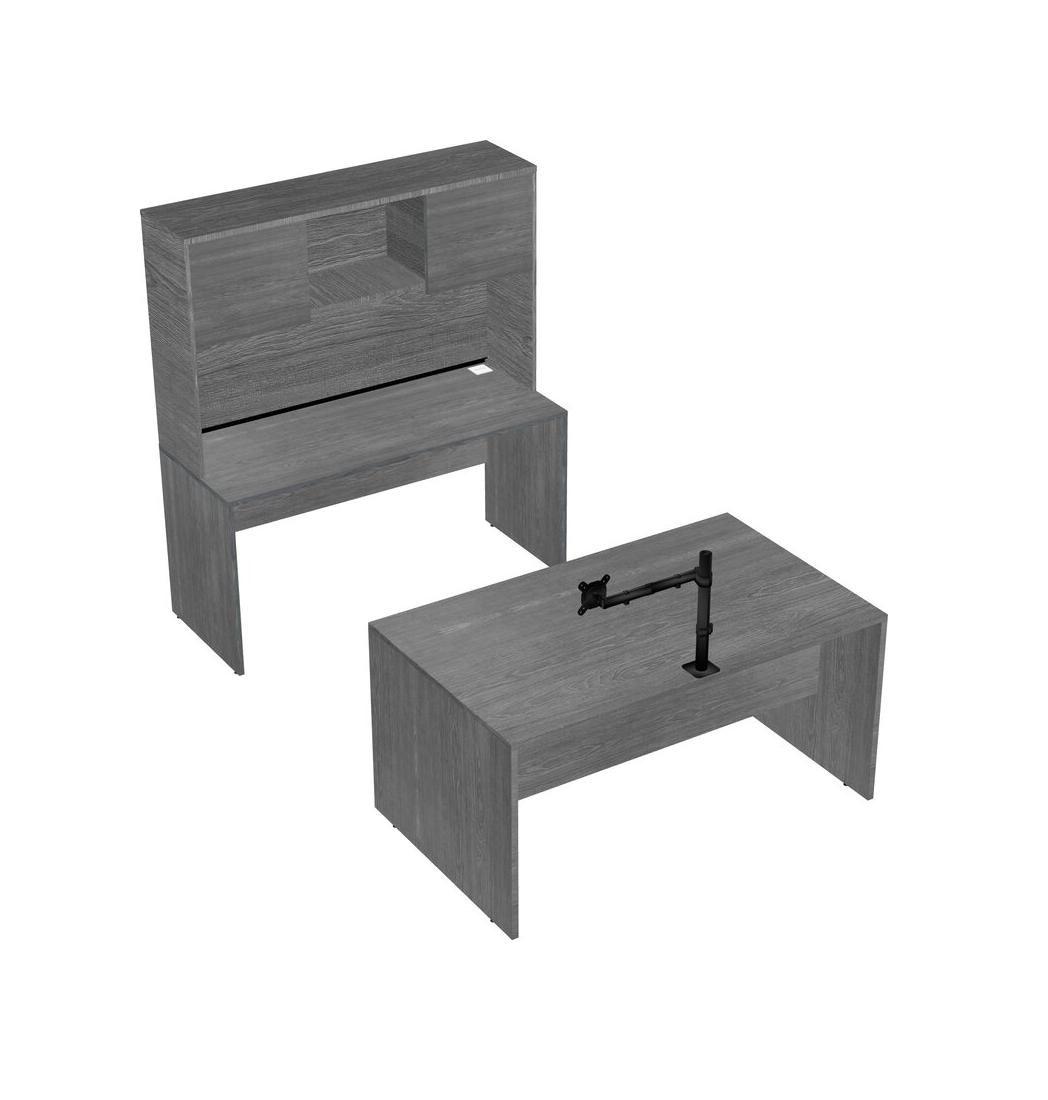Office Parallel Desk Credenza Desk + Hutch + Monitor Arm (single Arm)