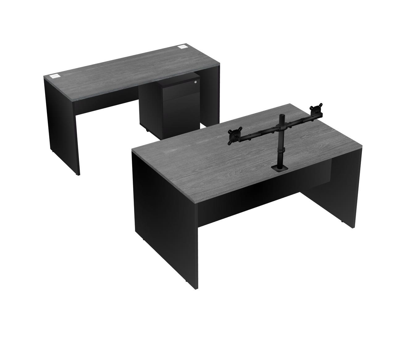 Office Parallel Desk Credenza Desk + Wooden Mobile Drawers + Monitor Arm (double Arms)