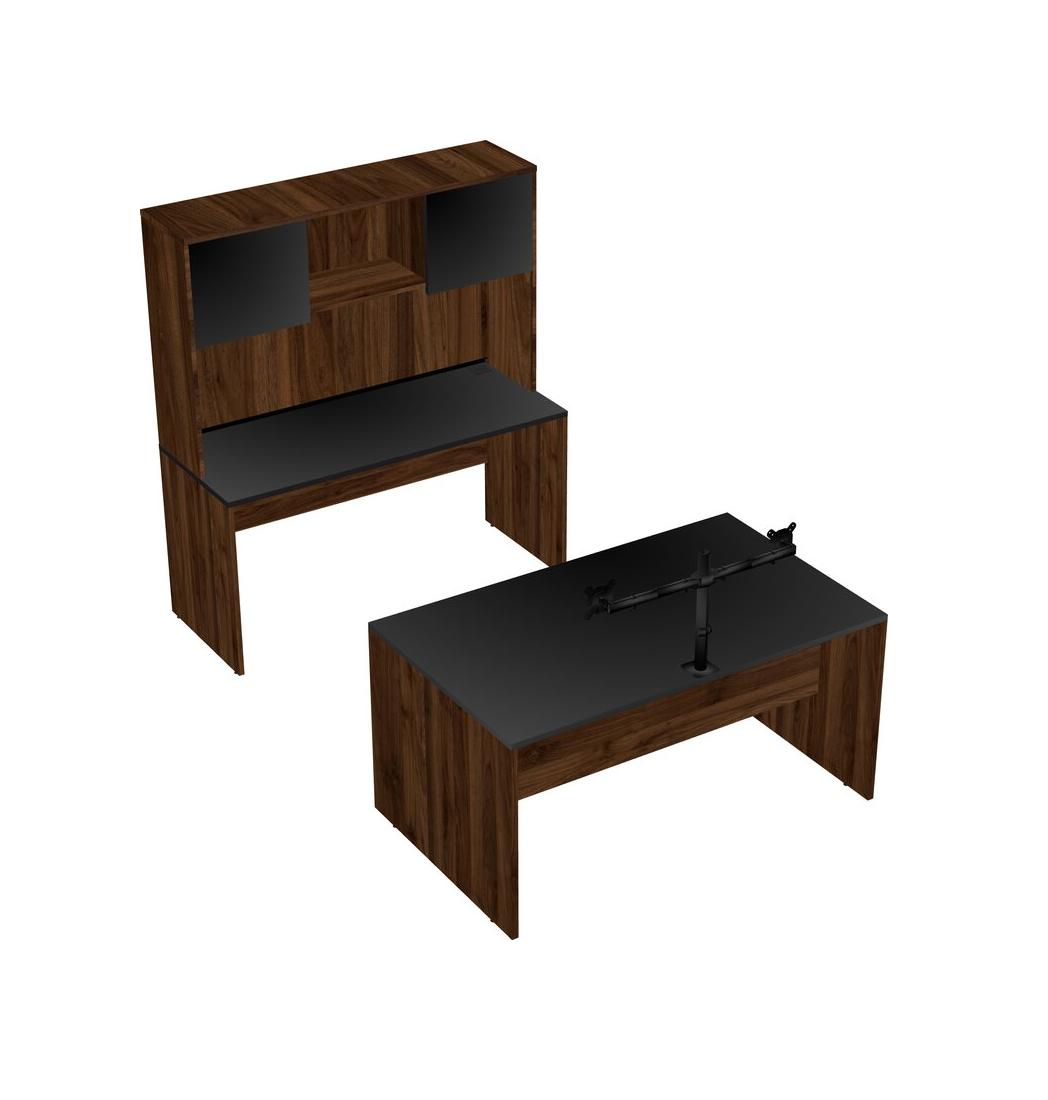 Office Parallel Desk Credenza Desk + Hutch + Monitor Arm (double Arms)