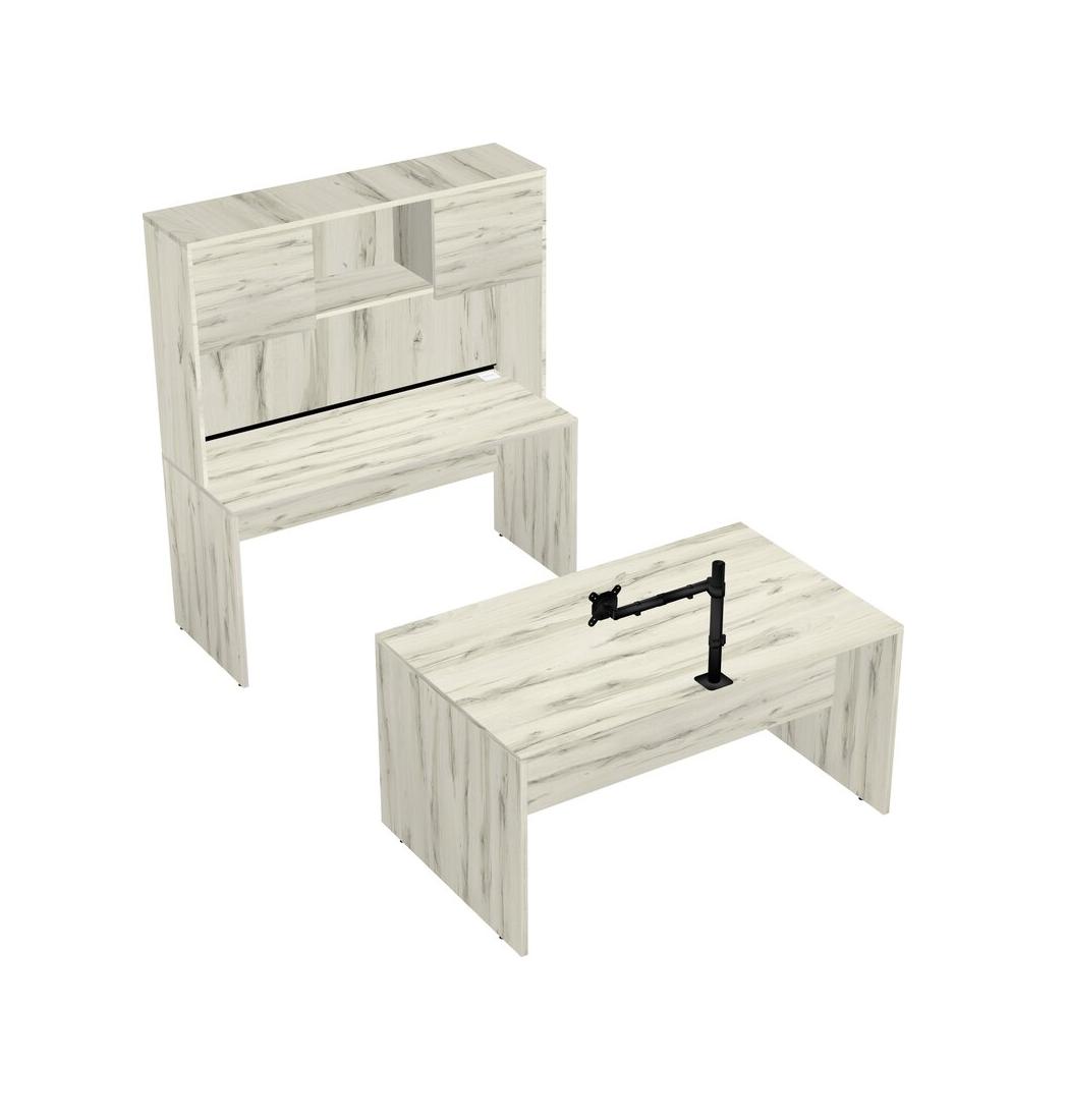 Office Parallel Desk Credenza Desk + Hutch + Monitor Arm (single Arm)