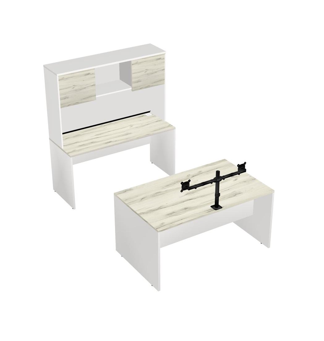 Office Parallel Desk Credenza Desk + Hutch + Monitor Arm (double Arms)