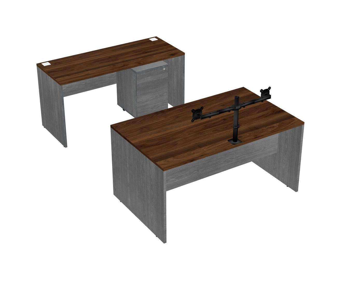 Office Parallel Desk Credenza Desk + Wooden Mobile Drawers + Monitor Arm (double Arms)