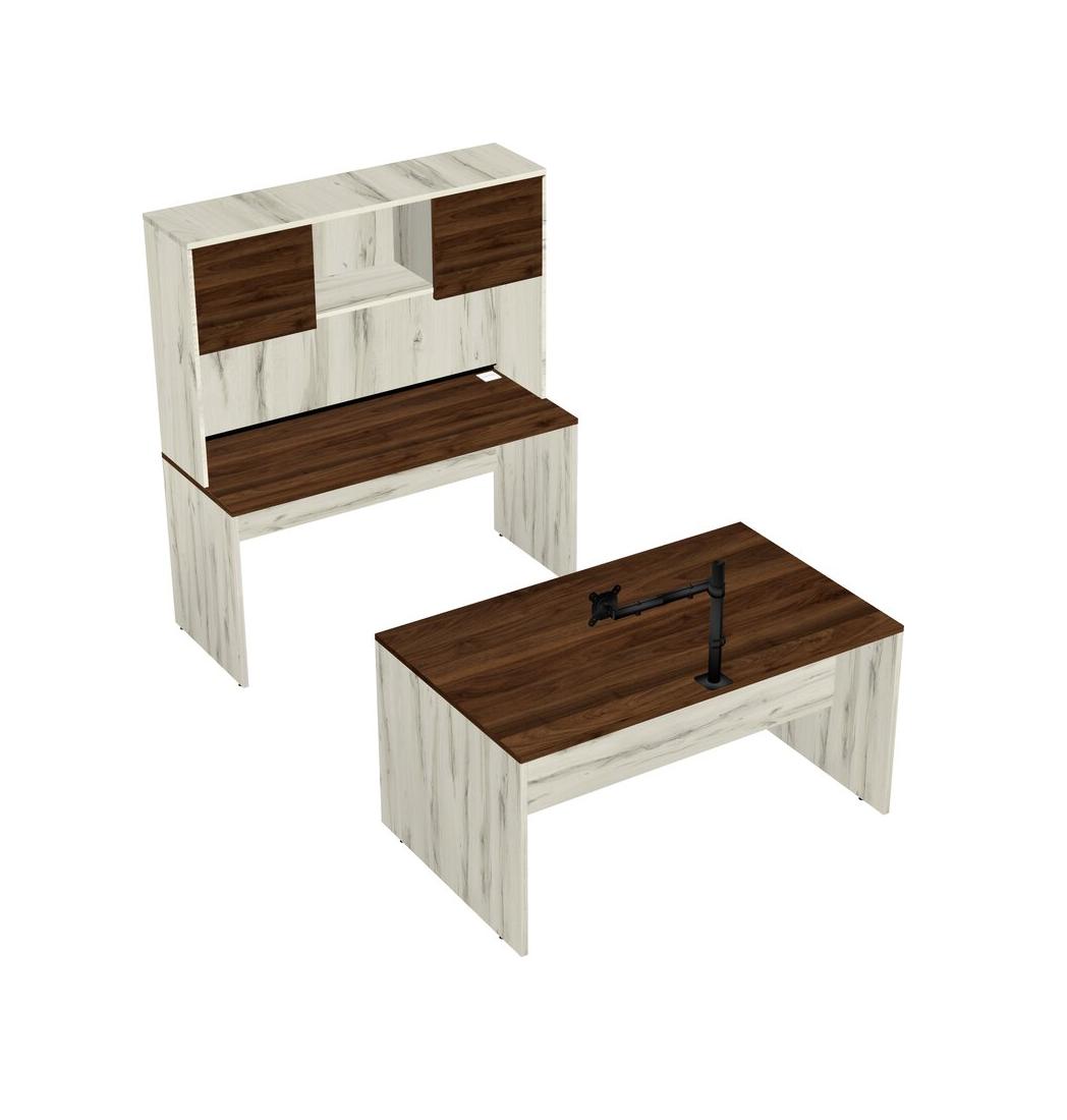Office Parallel Desk Credenza Desk + Hutch + Monitor Arm (single Arm)