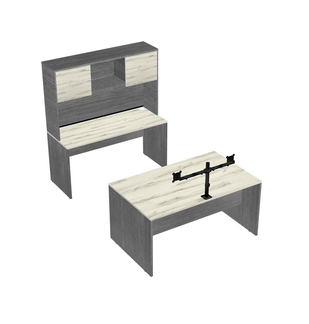 Office Parallel Desk Credenza Desk + Hutch + Monitor Arm (double Arms)