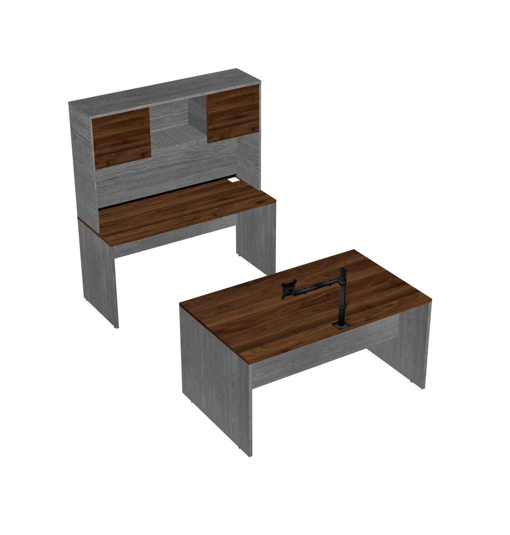 Office Parallel Desk Credenza Desk + Hutch + Monitor Arm (single Arm)