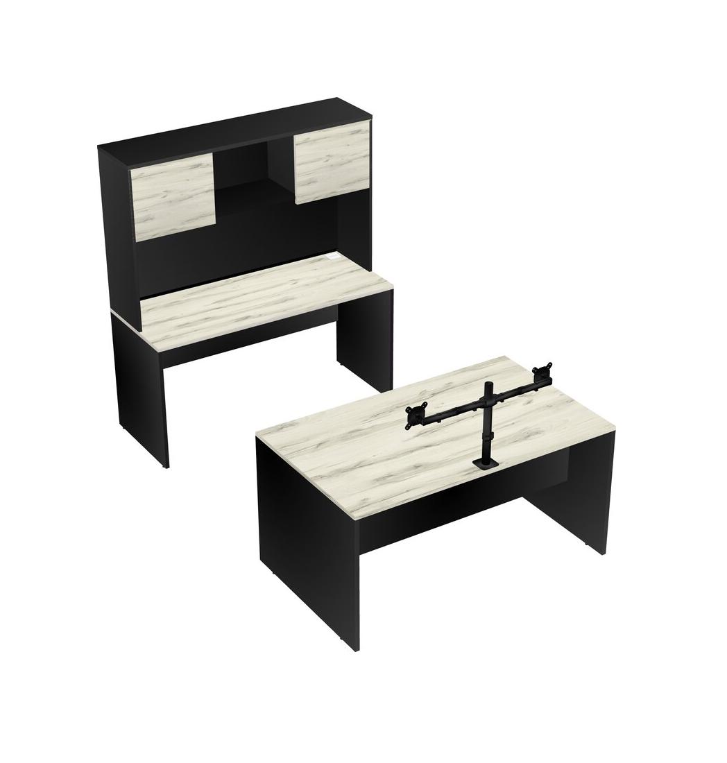 Office Parallel Desk Credenza Desk + Hutch + Monitor Arm (double Arms)