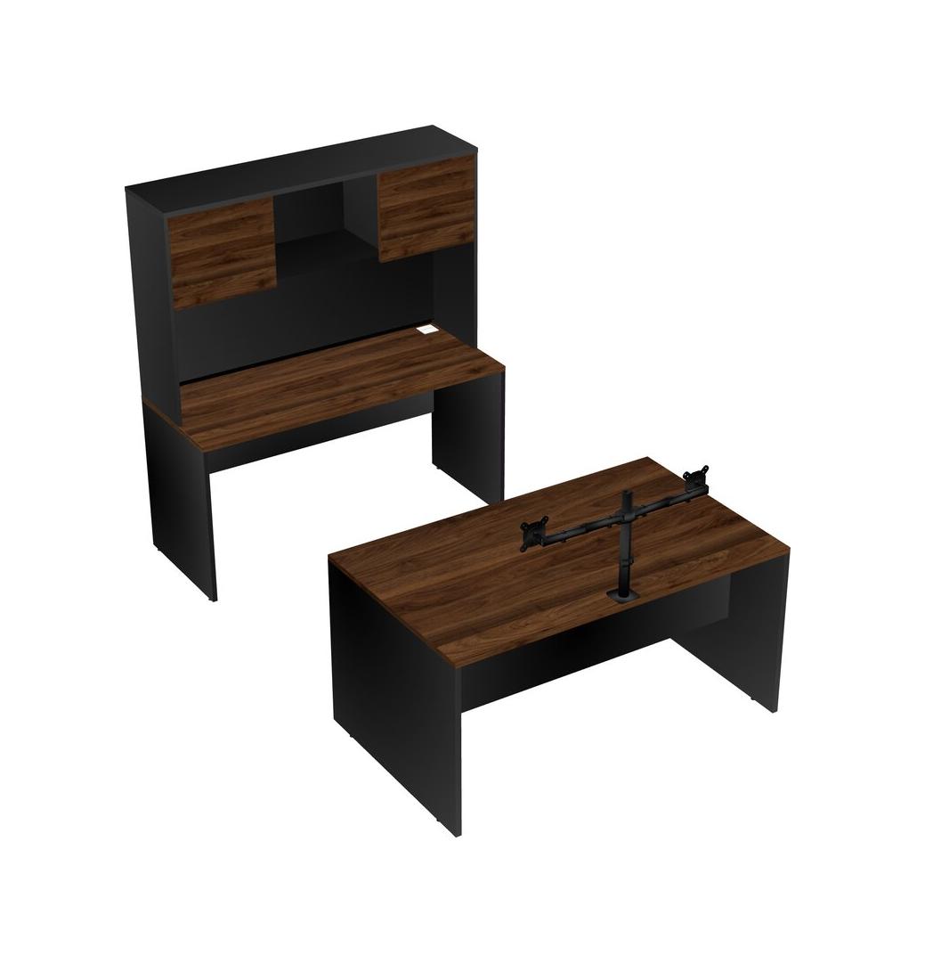 Office Parallel Desk Credenza Desk + Hutch + Monitor Arm (double Arms)