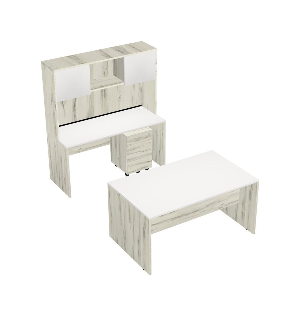 Office Parallel Desk Credenza Desk + Wooden Mobile Drawers + Hutch
