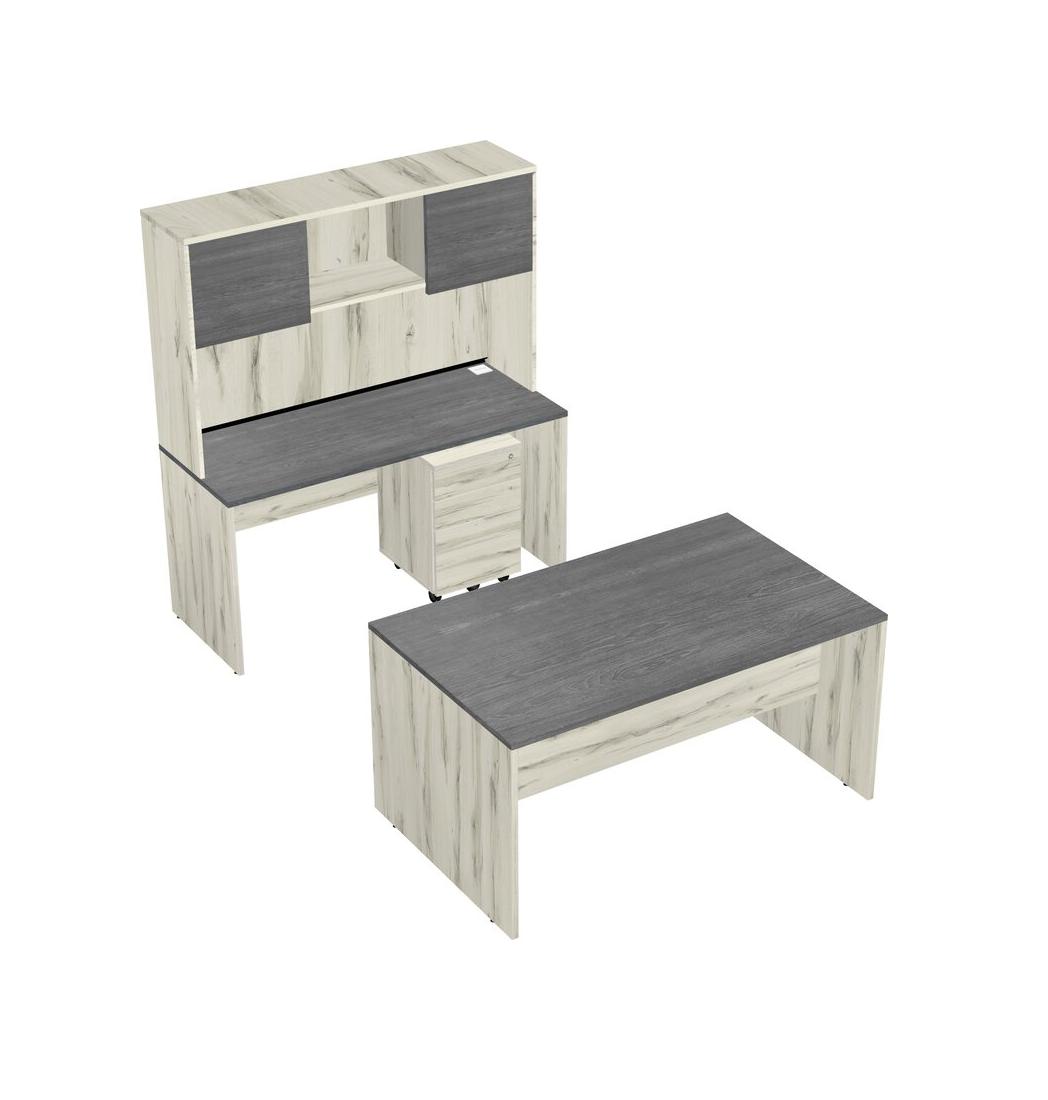 Office Parallel Desk Credenza Desk + Wooden Mobile Drawers + Hutch