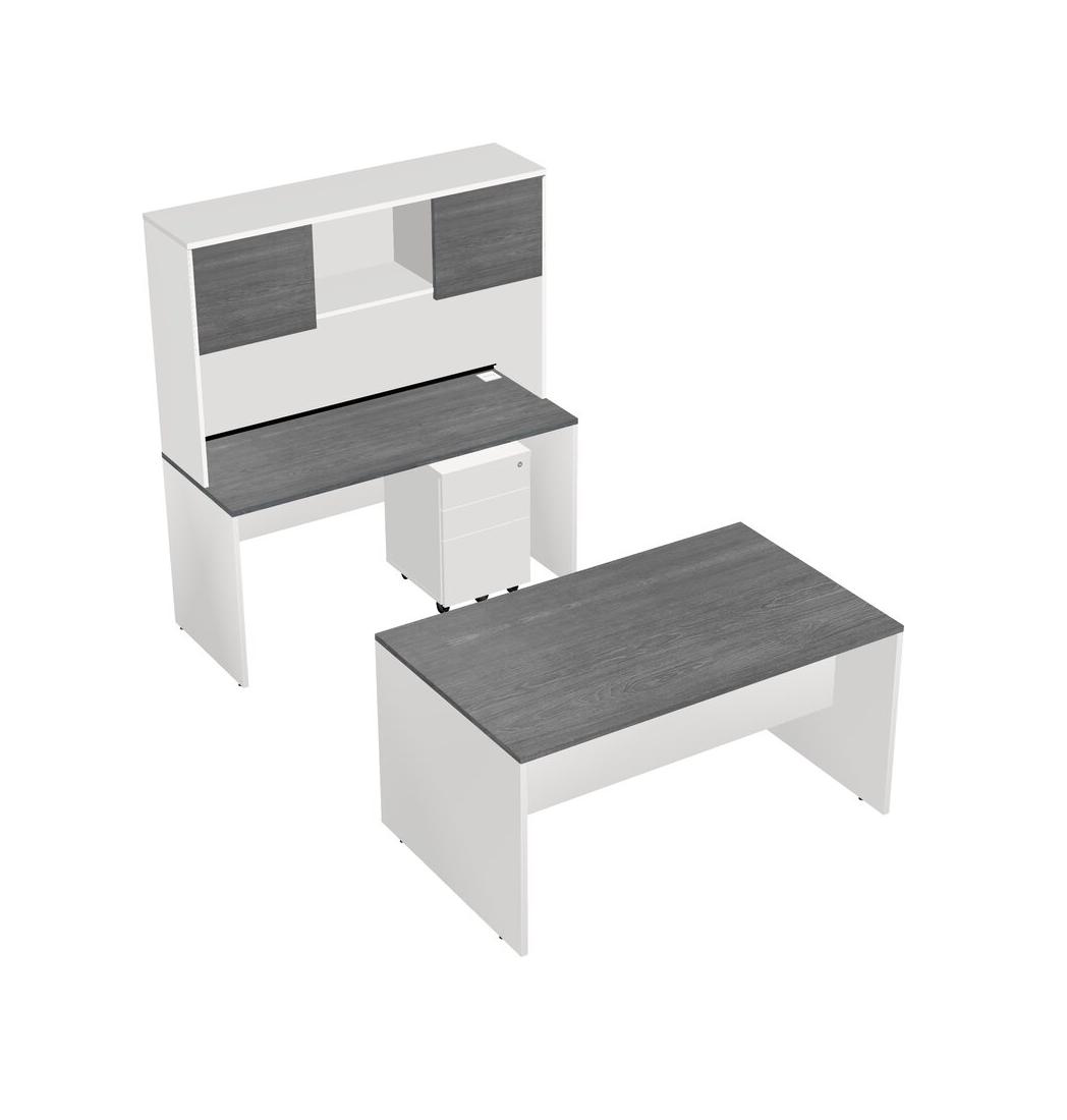 Office Parallel Desk Credenza Desk + Wooden Mobile Drawers + Hutch