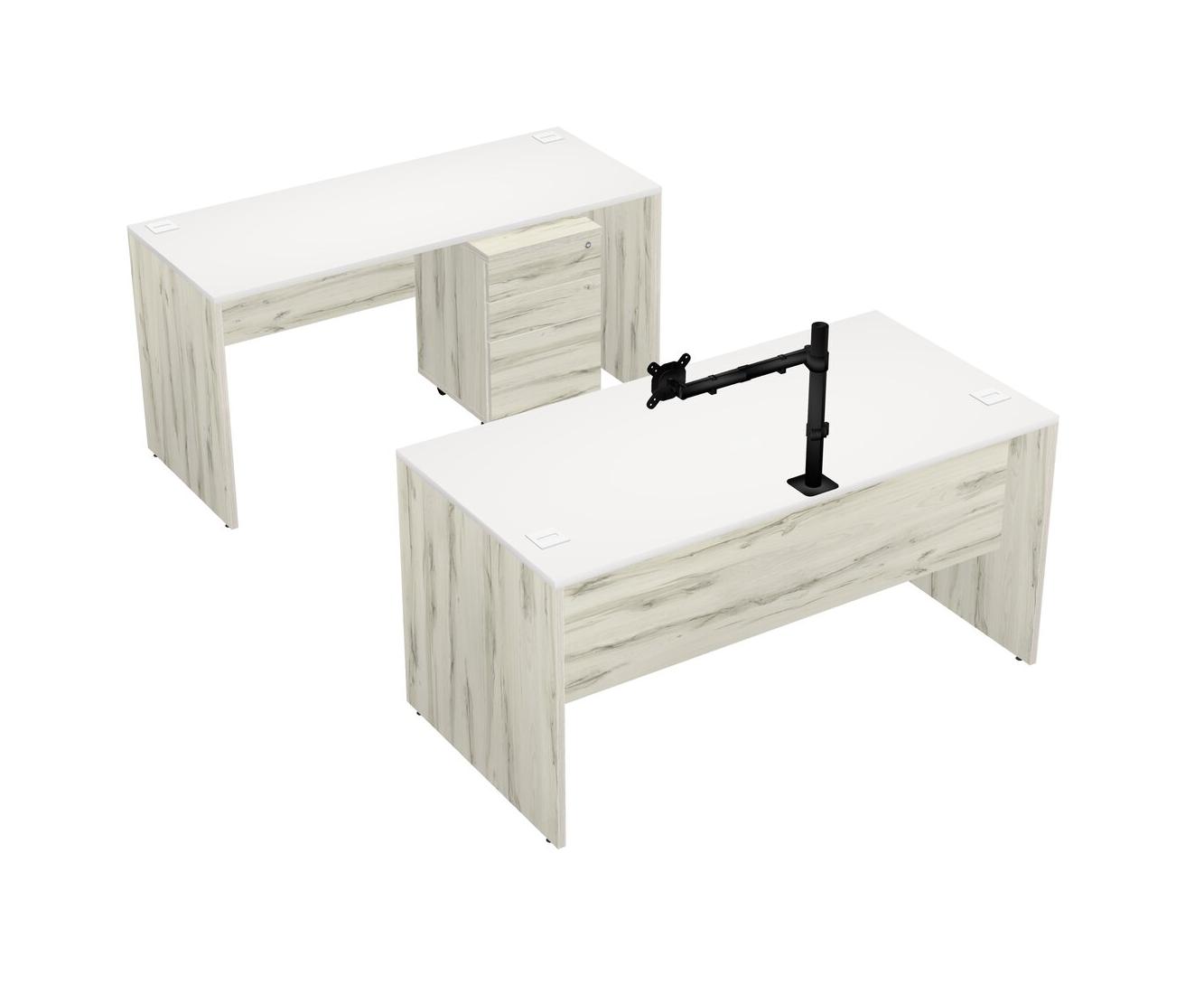 Office Parallel Desk Credenza Desk + Wooden Mobile Drawers + Monitor Arm (single Arm)