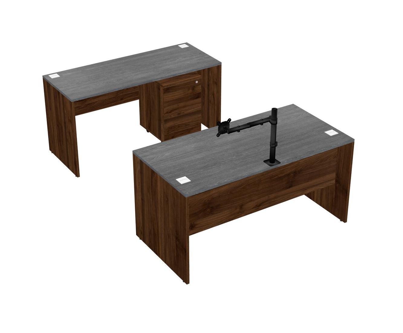 Office Parallel Desk Credenza Desk + Wooden Mobile Drawers + Monitor Arm (single Arm)