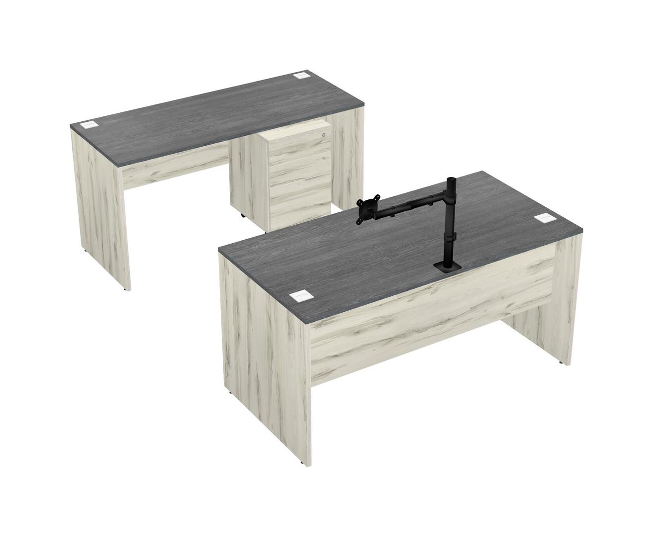 Office Parallel Desk Credenza Desk + Wooden Mobile Drawers + Monitor Arm (single Arm)