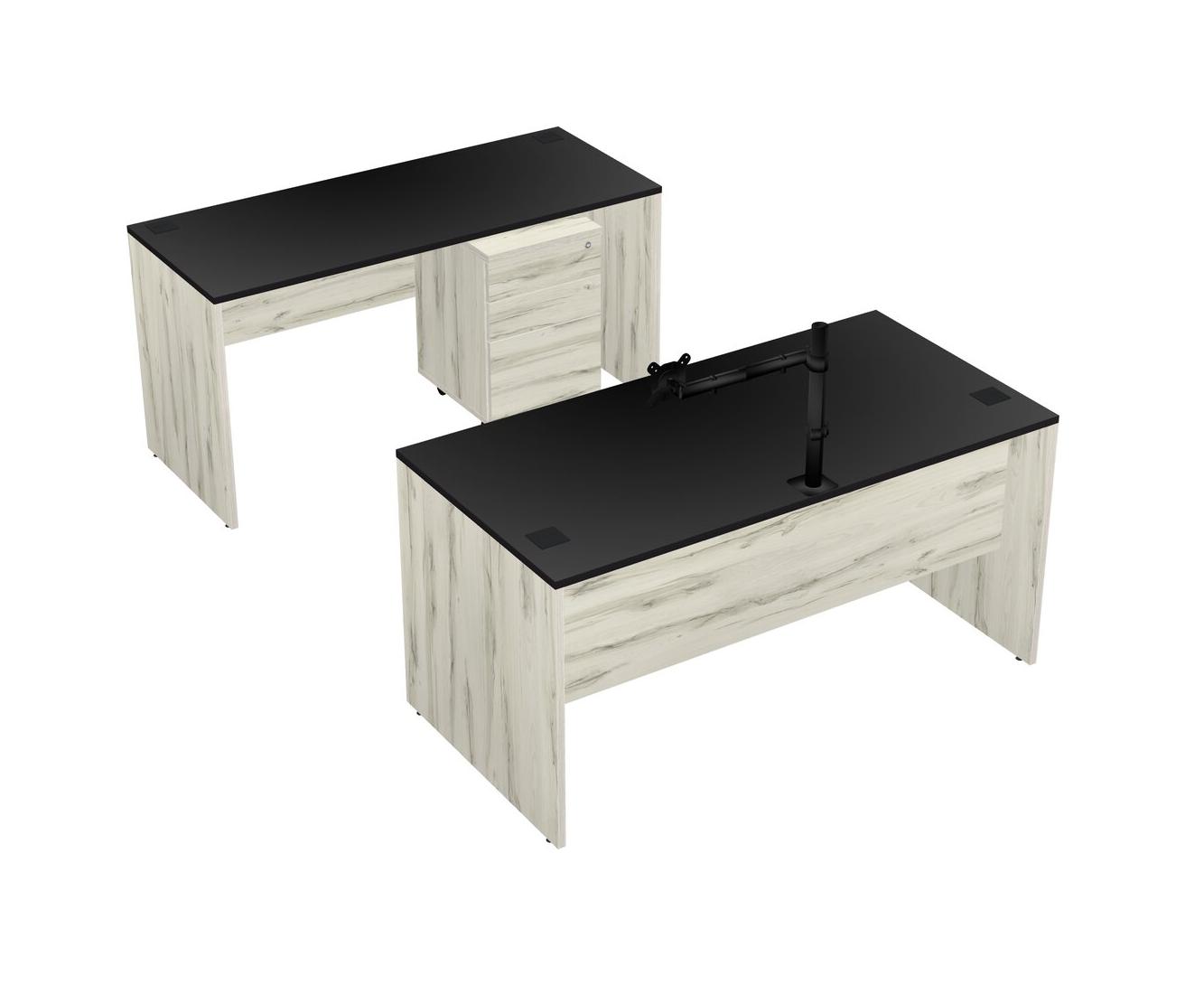 Office Parallel Desk Credenza Desk + Wooden Mobile Drawers + Monitor Arm (single Arm)