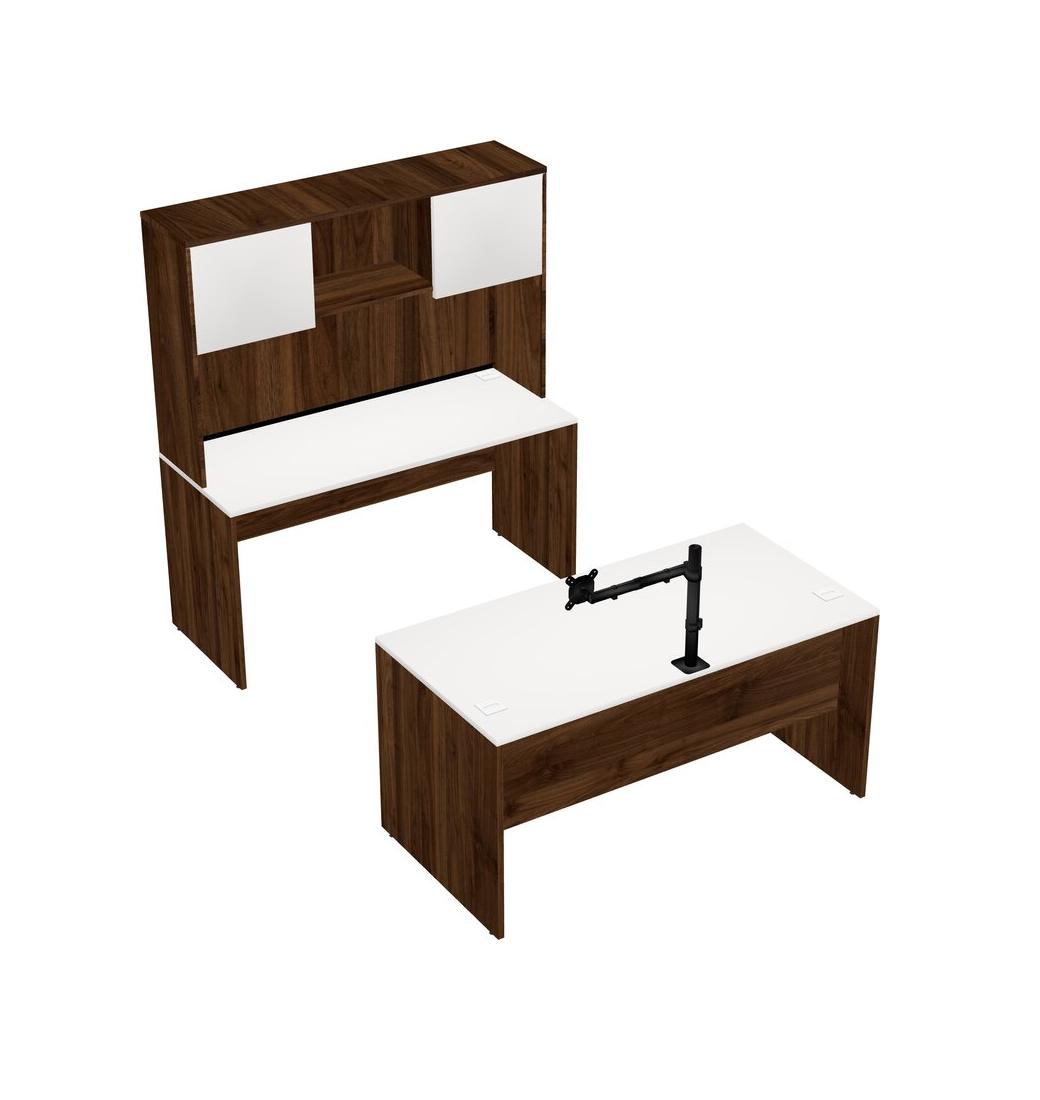 Office Parallel Desk Credenza Desk + Hutch + Monitor Arm (single Arm)