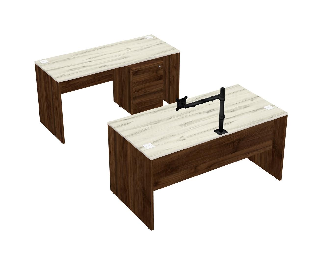Office Parallel Desk Credenza Desk + Wooden Mobile Drawers + Monitor Arm (single Arm)