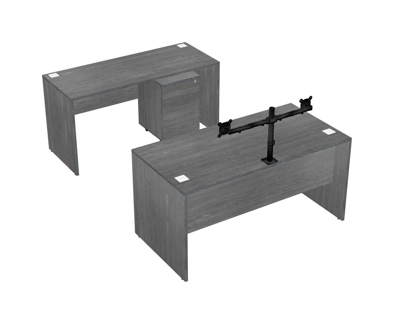 Office Parallel Desk Credenza Desk + Wooden Mobile Drawers + Monitor Arm (double Arms)