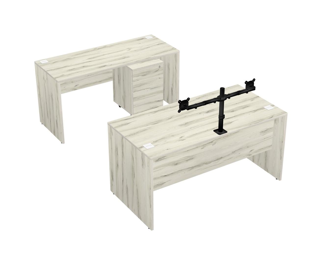 Office Parallel Desk Credenza Desk + Wooden Mobile Drawers + Monitor Arm (double Arms)
