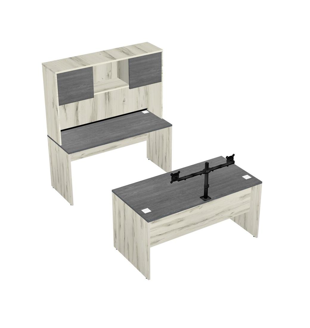 Office Parallel Desk Credenza Desk + Hutch + Monitor Arm (double Arms)