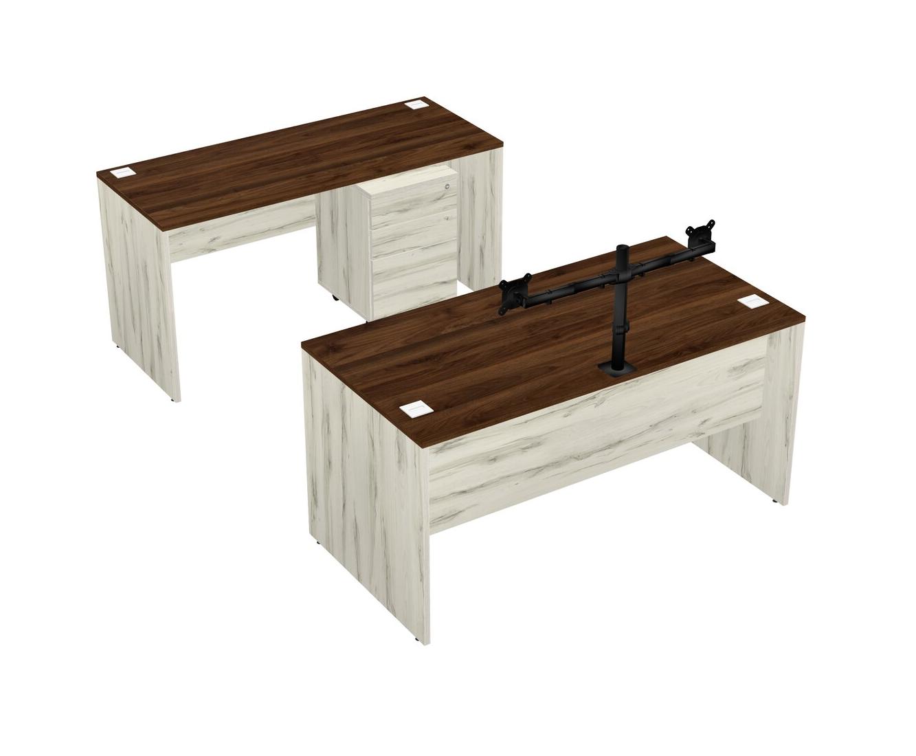 Office Parallel Desk Credenza Desk + Wooden Mobile Drawers + Monitor Arm (double Arms)