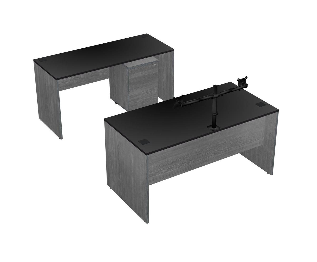 Office Parallel Desk Credenza Desk + Wooden Mobile Drawers + Monitor Arm (double Arms)