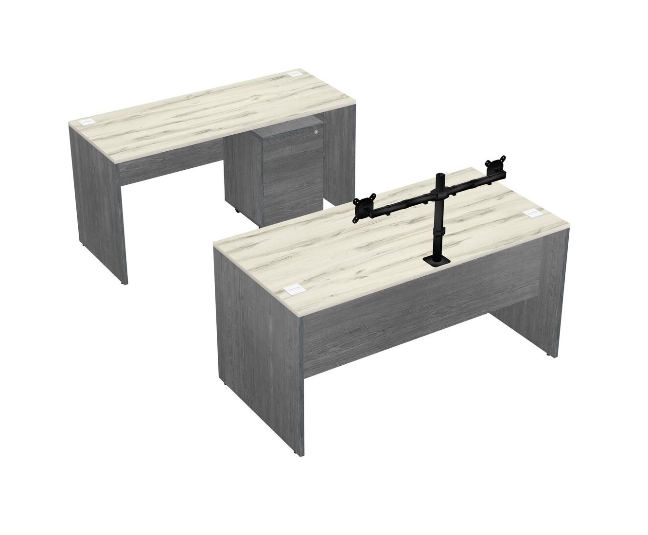 Office Parallel Desk Credenza Desk + Wooden Mobile Drawers + Monitor Arm (double Arms)