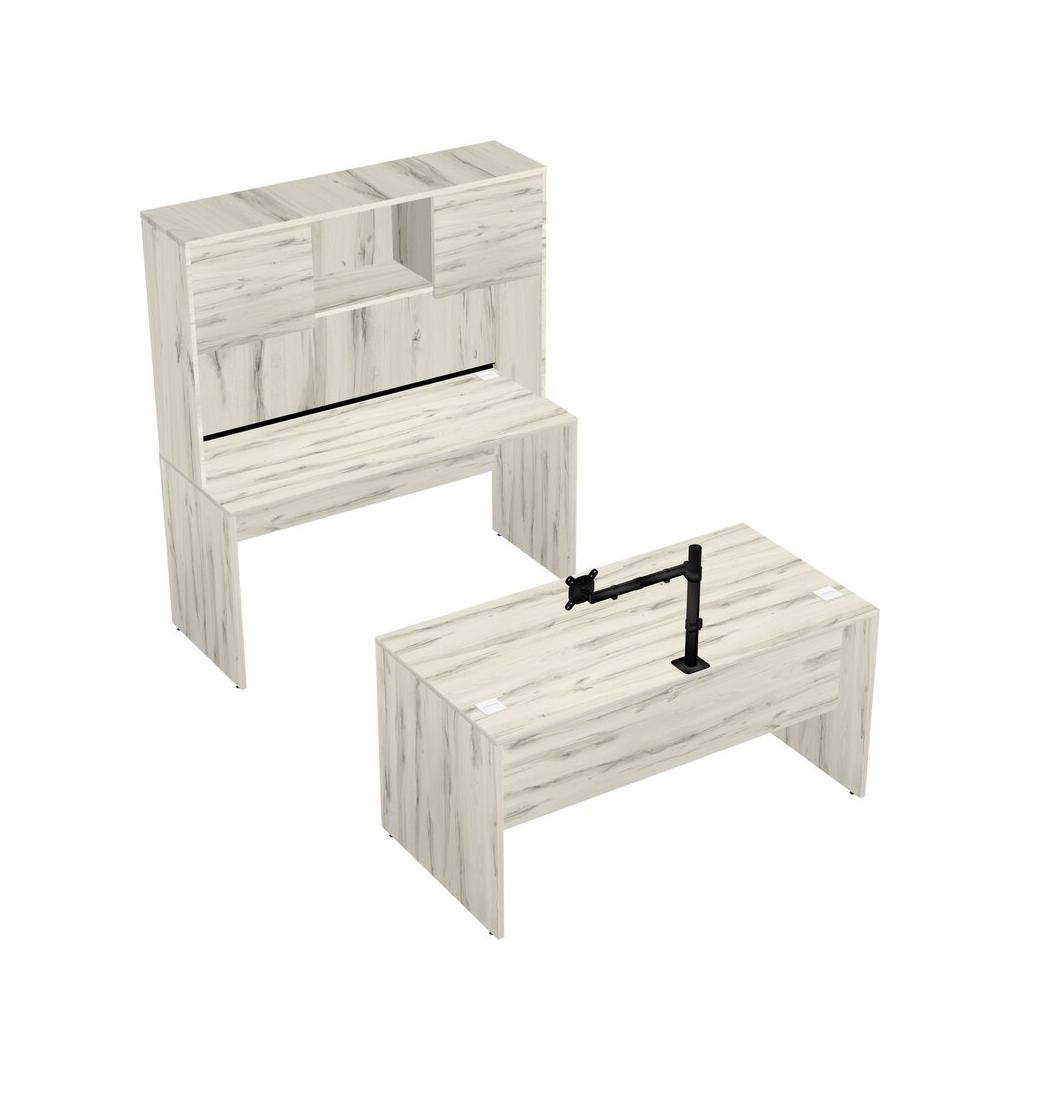 Office Parallel Desk Credenza Desk + Hutch + Monitor Arm (single Arm)