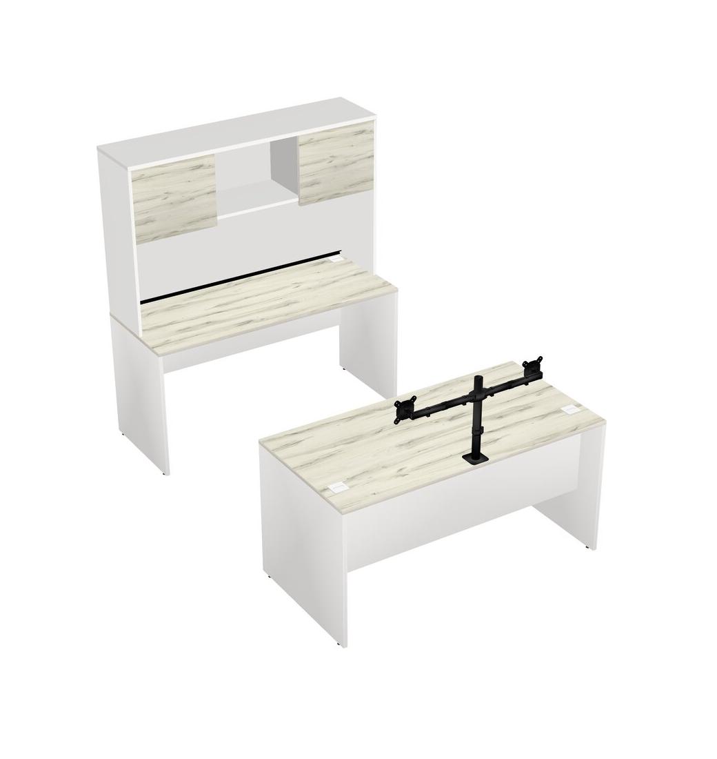 Office Parallel Desk Credenza Desk + Hutch + Monitor Arm (double Arms)