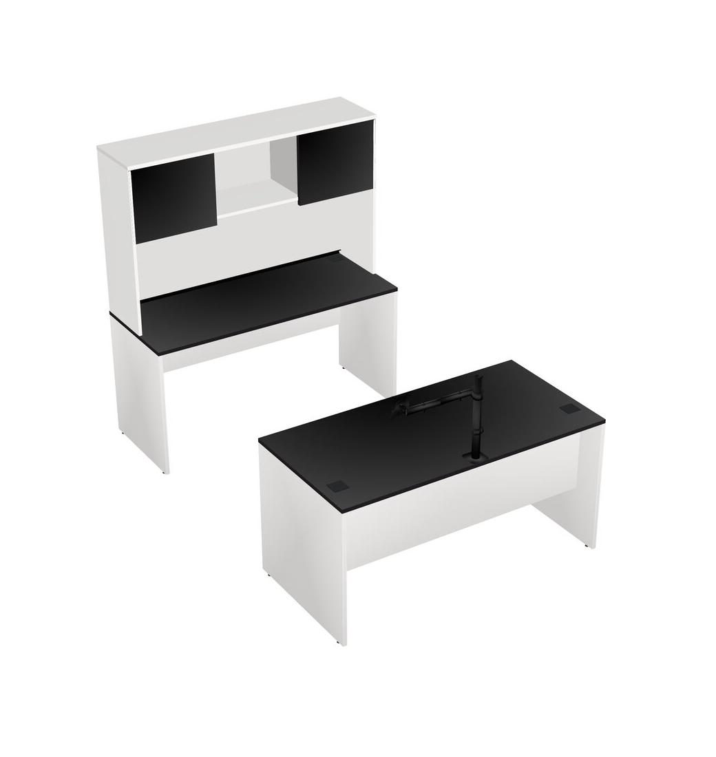 Office Parallel Desk Credenza Desk + Hutch + Monitor Arm (single Arm)