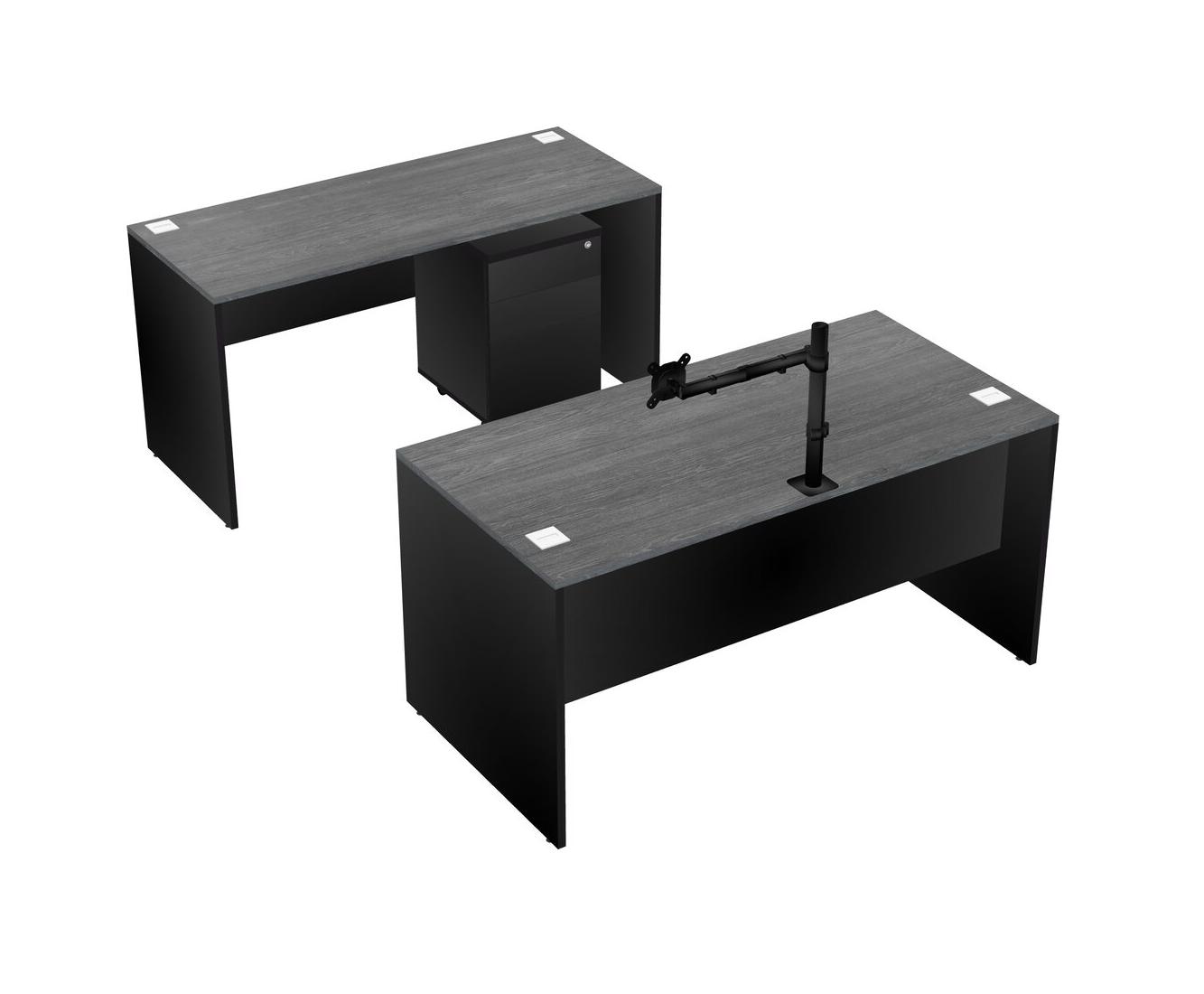 Office Parallel Desk Credenza Desk + Wooden Mobile Drawers + Monitor Arm (single Arm)