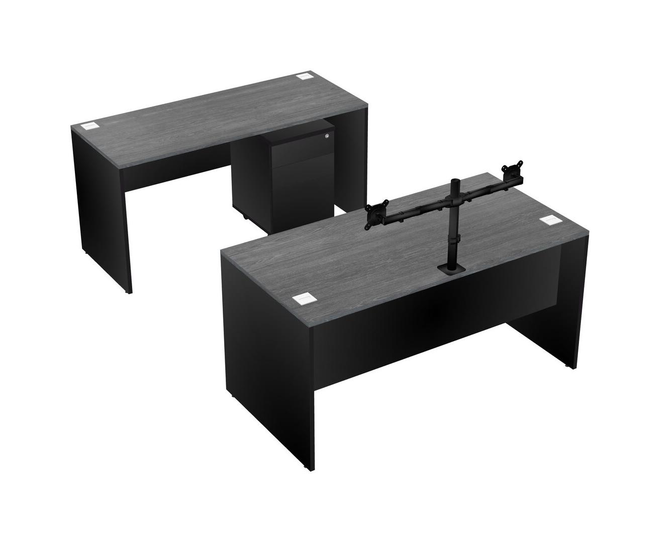 Office Parallel Desk Credenza Desk + Wooden Mobile Drawers + Monitor Arm (double Arms)