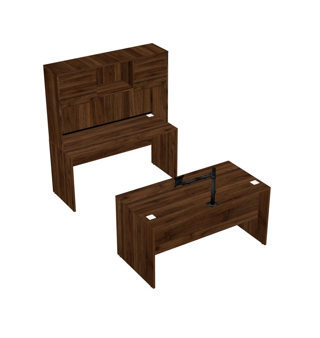Office Parallel Desk Credenza Desk + Hutch + Monitor Arm (single Arm)