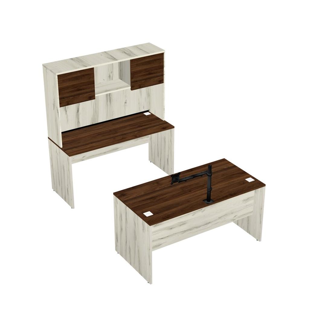 Office Parallel Desk Credenza Desk + Hutch + Monitor Arm (single Arm)