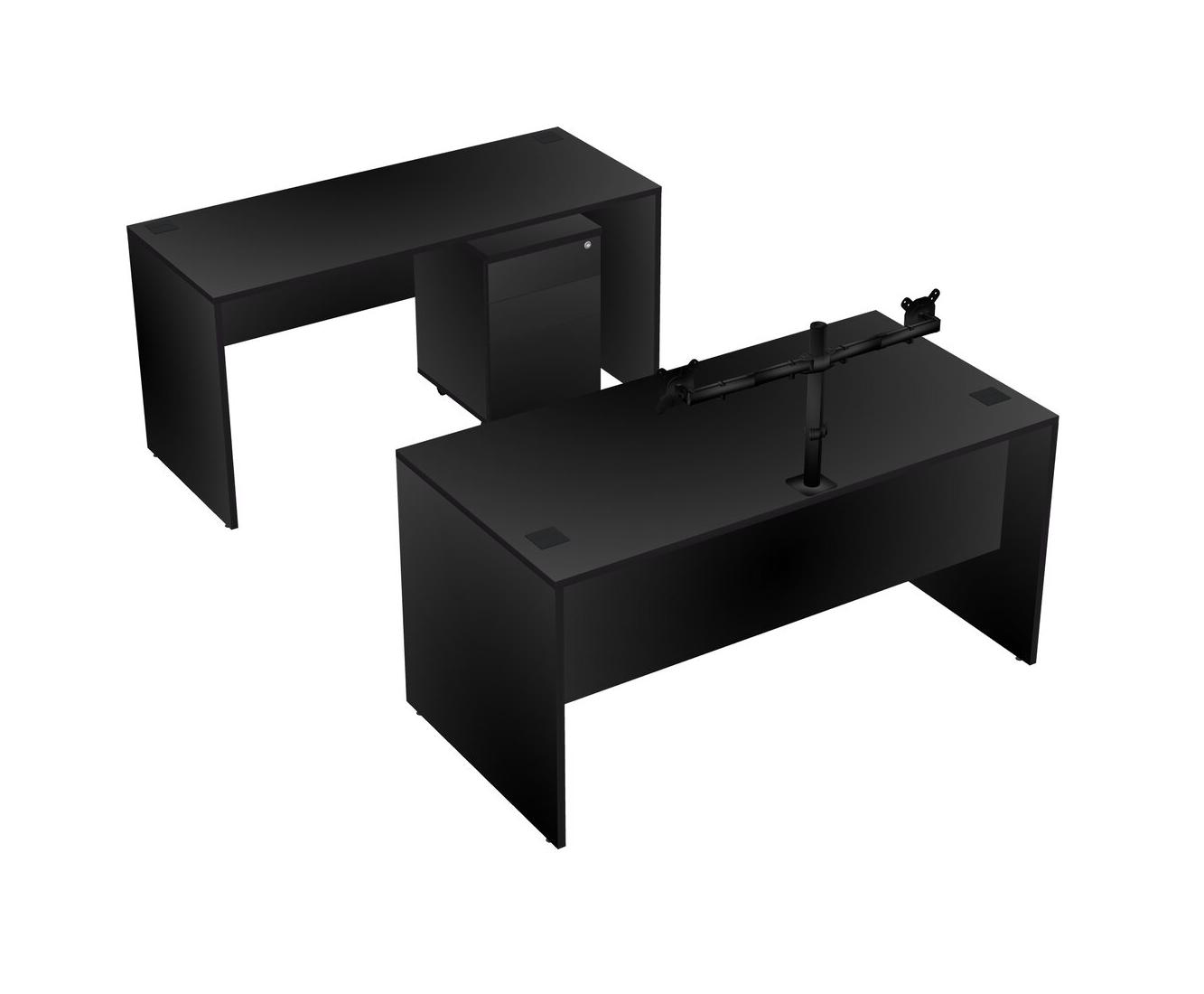 Office Parallel Desk Credenza Desk + Wooden Mobile Drawers + Monitor Arm (double Arms)