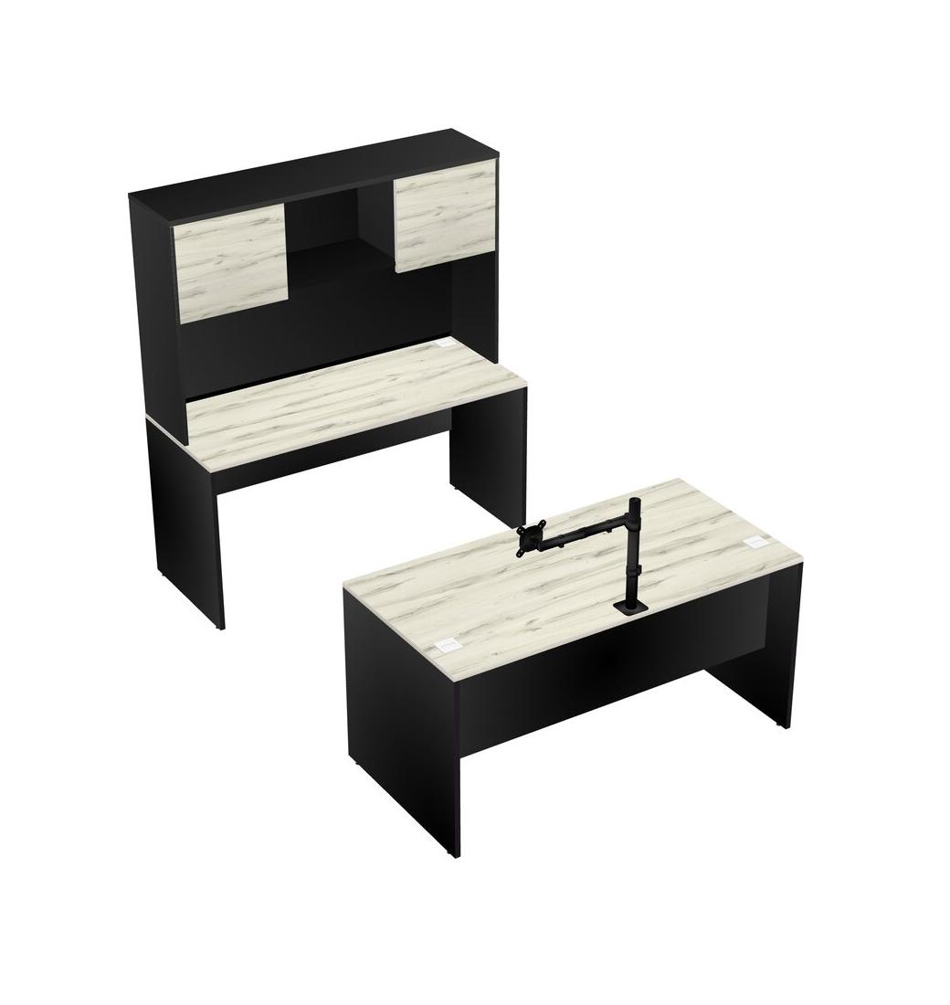 Office Parallel Desk Credenza Desk + Hutch + Monitor Arm (single Arm)