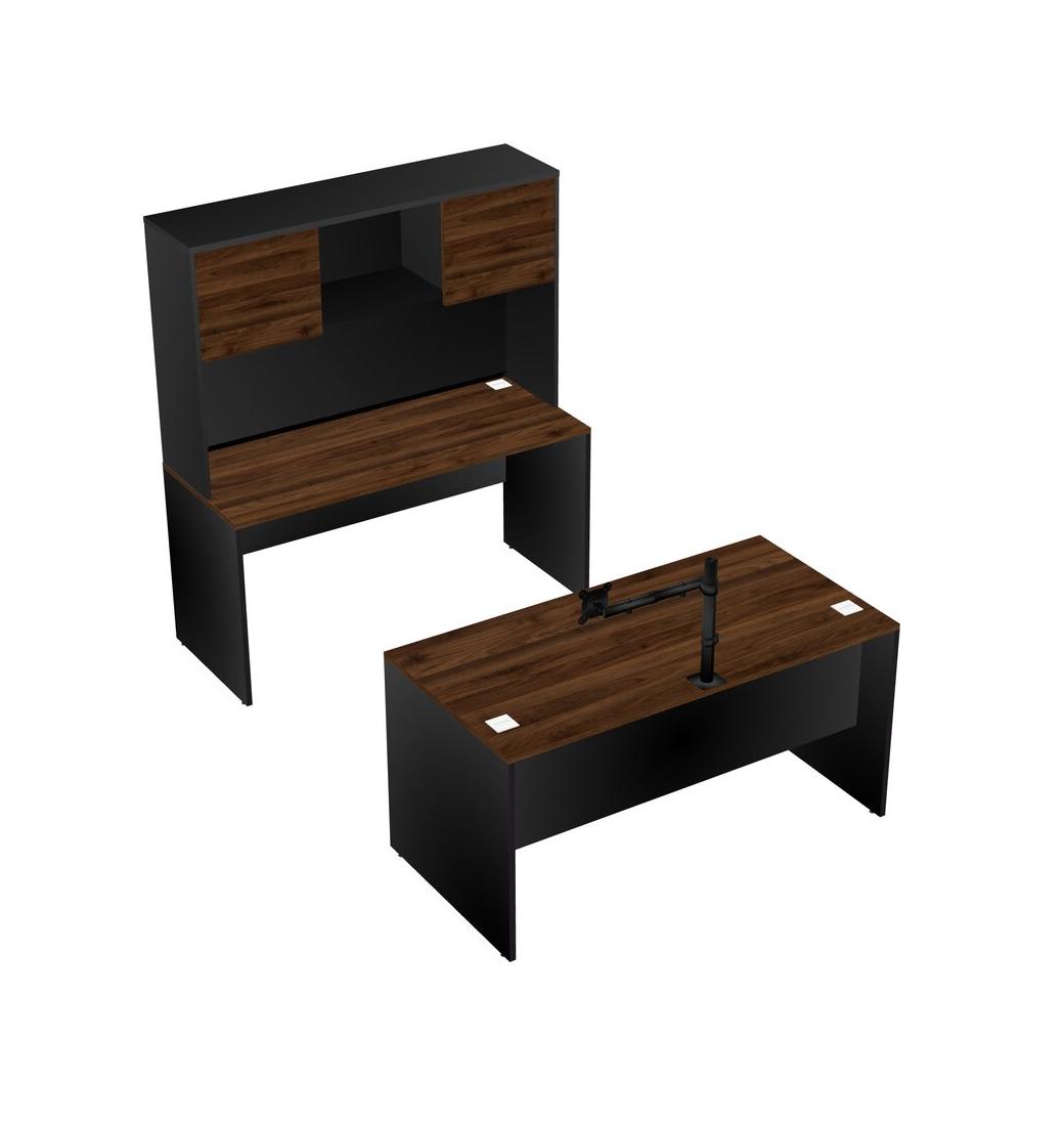 Office Parallel Desk Credenza Desk + Hutch + Monitor Arm (single Arm)