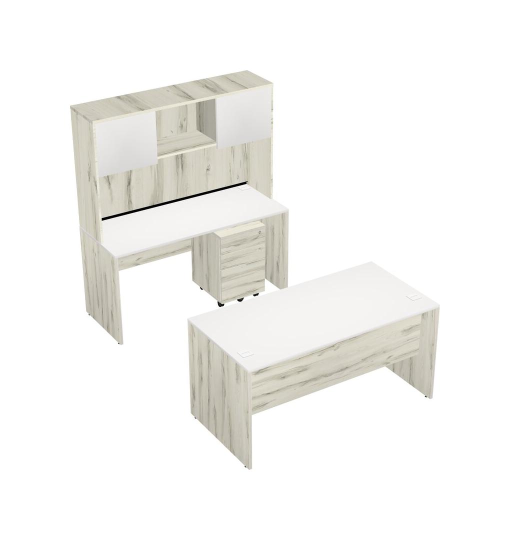 Office Parallel Desk Credenza Desk + Wooden Mobile Drawers + Hutch