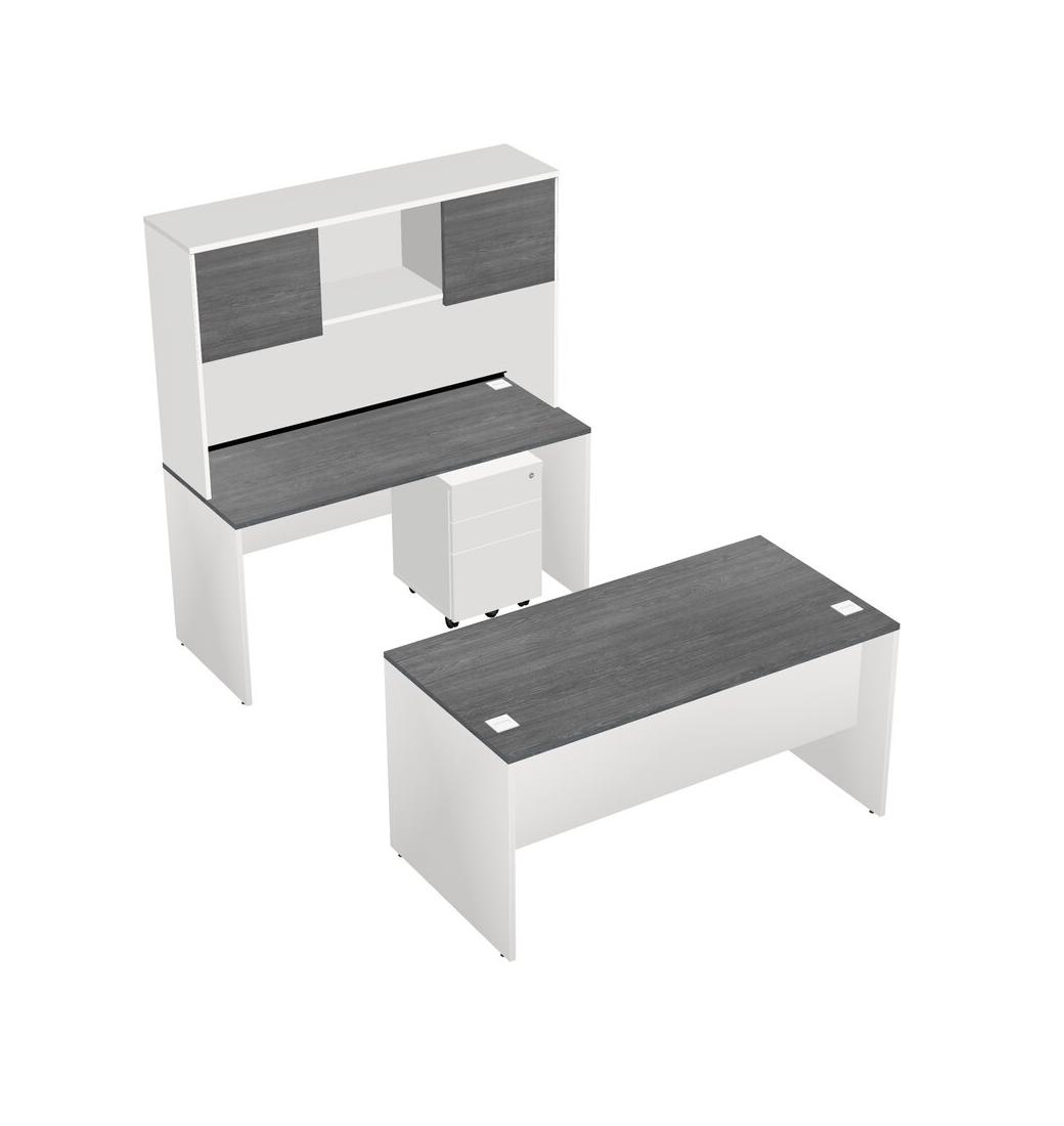 Office Parallel Desk Credenza Desk + Wooden Mobile Drawers + Hutch