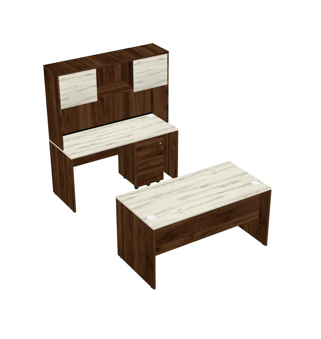 Office Parallel Desk Credenza Desk + Wooden Mobile Drawers + Hutch