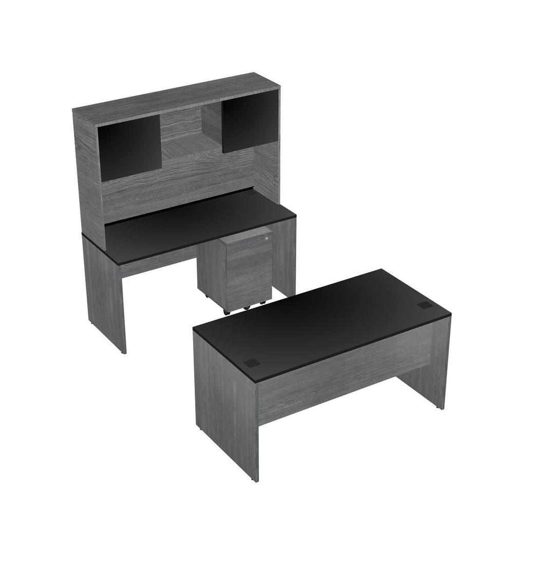 Office Parallel Desk Credenza Desk + Wooden Mobile Drawers + Hutch