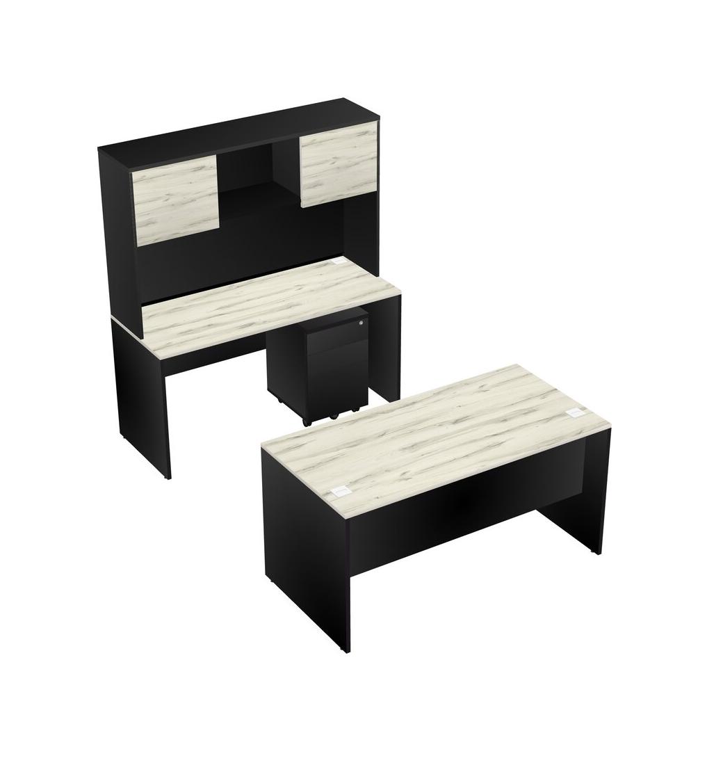 Office Parallel Desk Credenza Desk + Wooden Mobile Drawers + Hutch