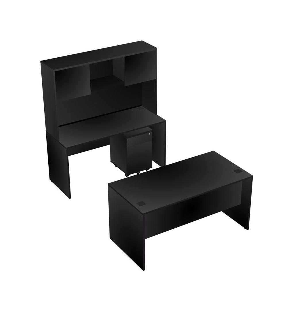 Office Parallel Desk Credenza Desk + Wooden Mobile Drawers + Hutch