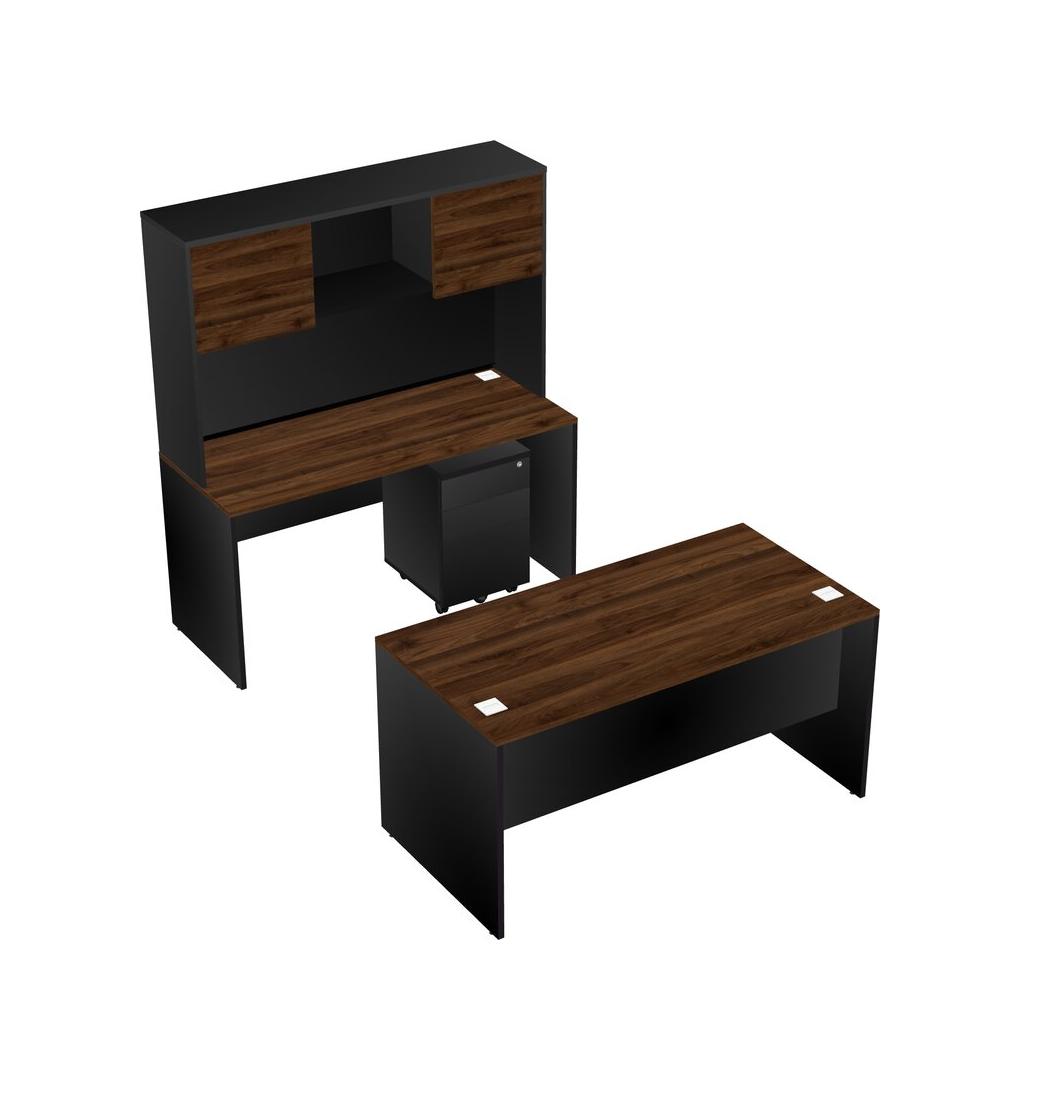 Office Parallel Desk Credenza Desk + Wooden Mobile Drawers + Hutch