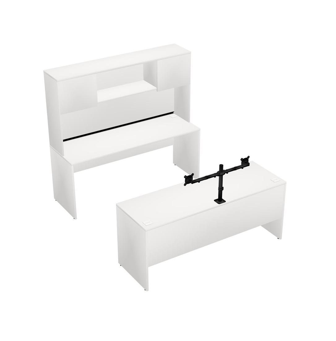 Office Parallel Desk Credenza Desk + Hutch + Monitor Arm (double Arms)