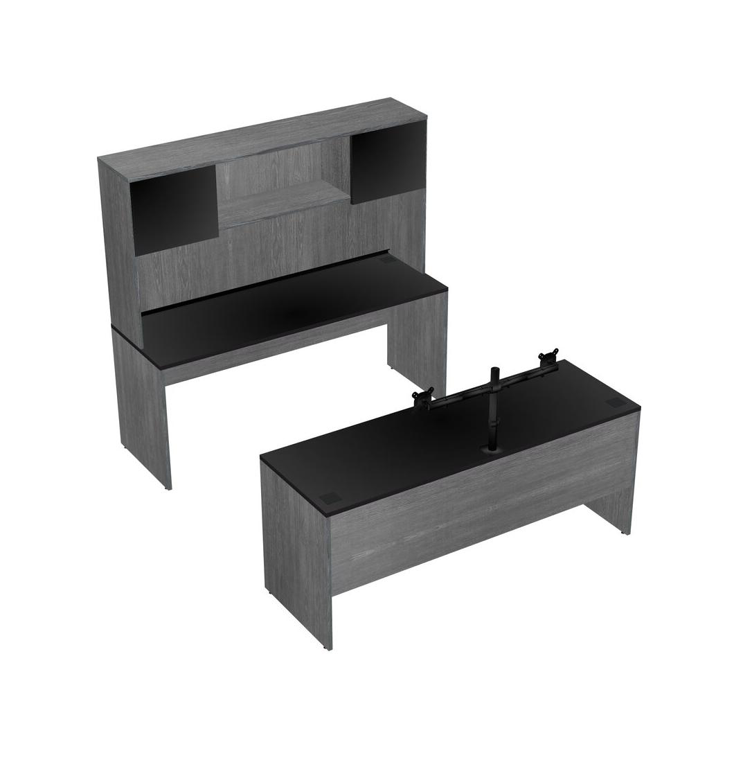 Office Parallel Desk Credenza Desk + Hutch + Monitor Arm (double Arms)
