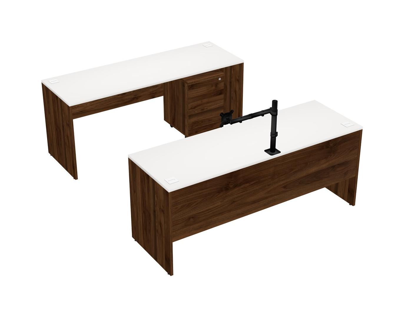 Office Parallel Desk Credenza Desk + Wooden Mobile Drawers + Monitor Arm (single Arm)